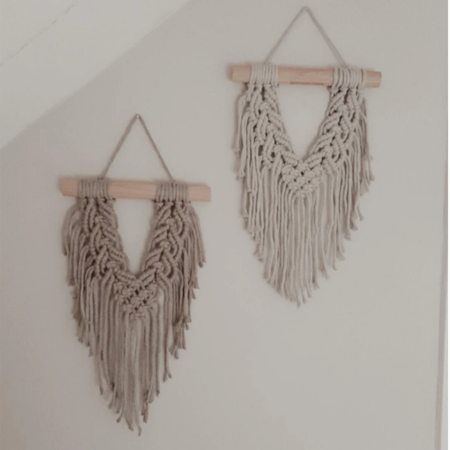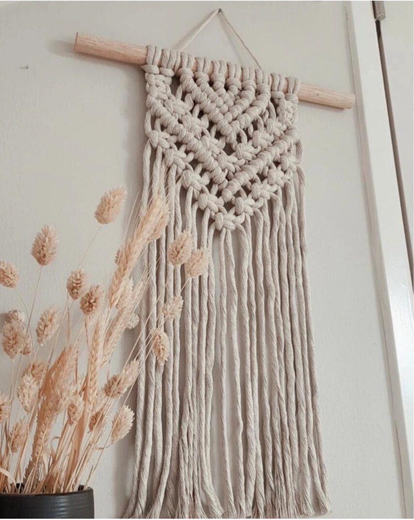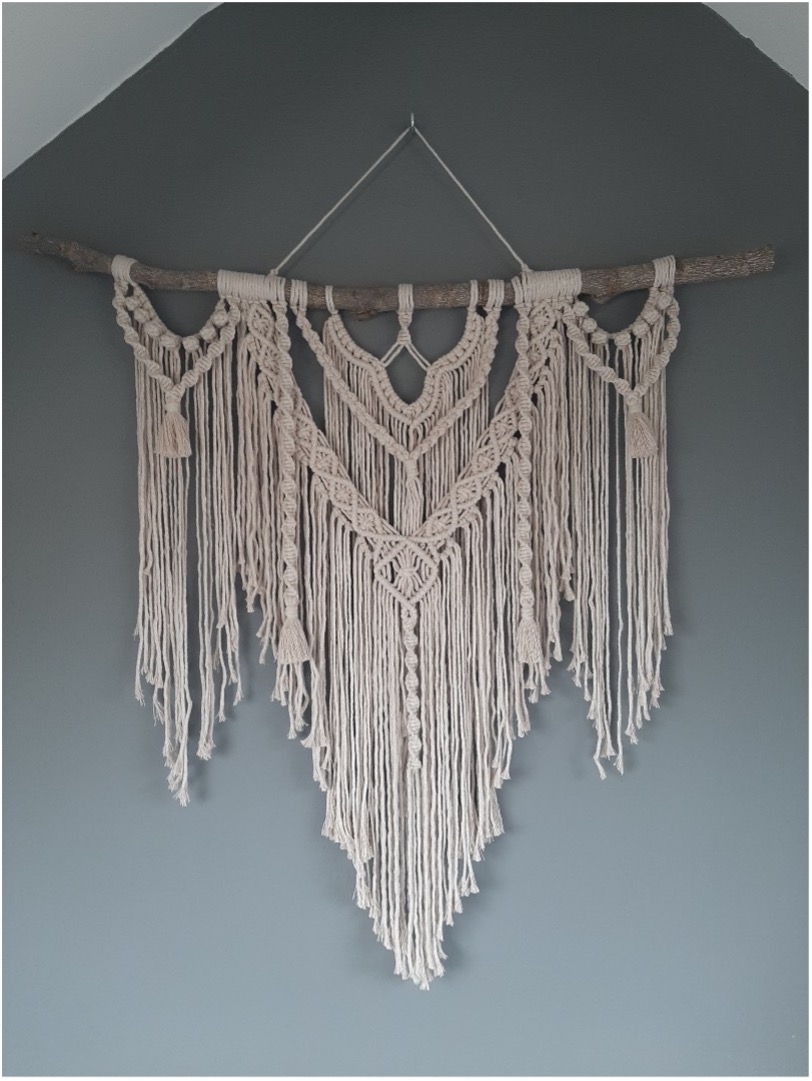 Ik maak niet alleen macramé wandkleden maar maak ook macramé kussentjes, sleutelhangers, speenkoorden, etc.