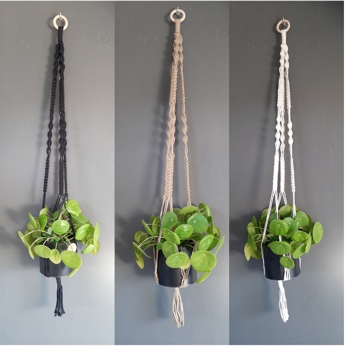 Plantenhangers Deze leuke plantenhangers zijn verkrijgbaar in diverse lengtes, kleuren en knooppatronen. Heel leuk om onder de overkapping te hangen of in een hoekje in de woning. €15,00, lengte op maat vanaf €20,- Category: Diverse Date: juli 5, 2023