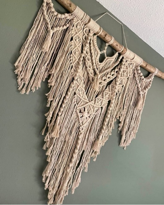 Dit XL wandkleed is wat mij betreft de perfecte aanvulling in een boho/ibiza style interieur! Maar door de moderne touch past deze ook in elk ander interieur. Deze is uitgevoerd in de kleur sand, maar op aanvraag kan deze geheel naar wens gemaakt worden