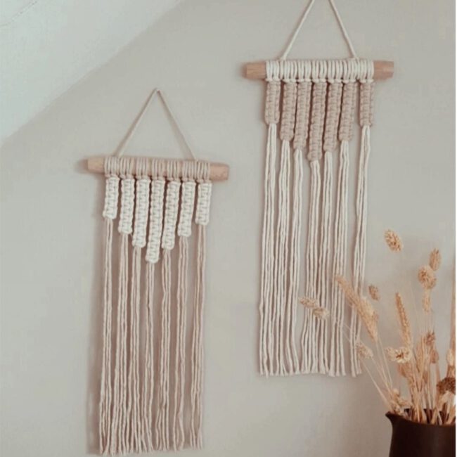 Deze kleine wandhangertjes verlenen zich perfect voor elke kamer in huis. Door zelf de kleurencombinatie te kiezen past hij goed bij je kleurenpallet van de ruimte. Ps; ook een leuke cadeautip, bijv voor op een babykamer.